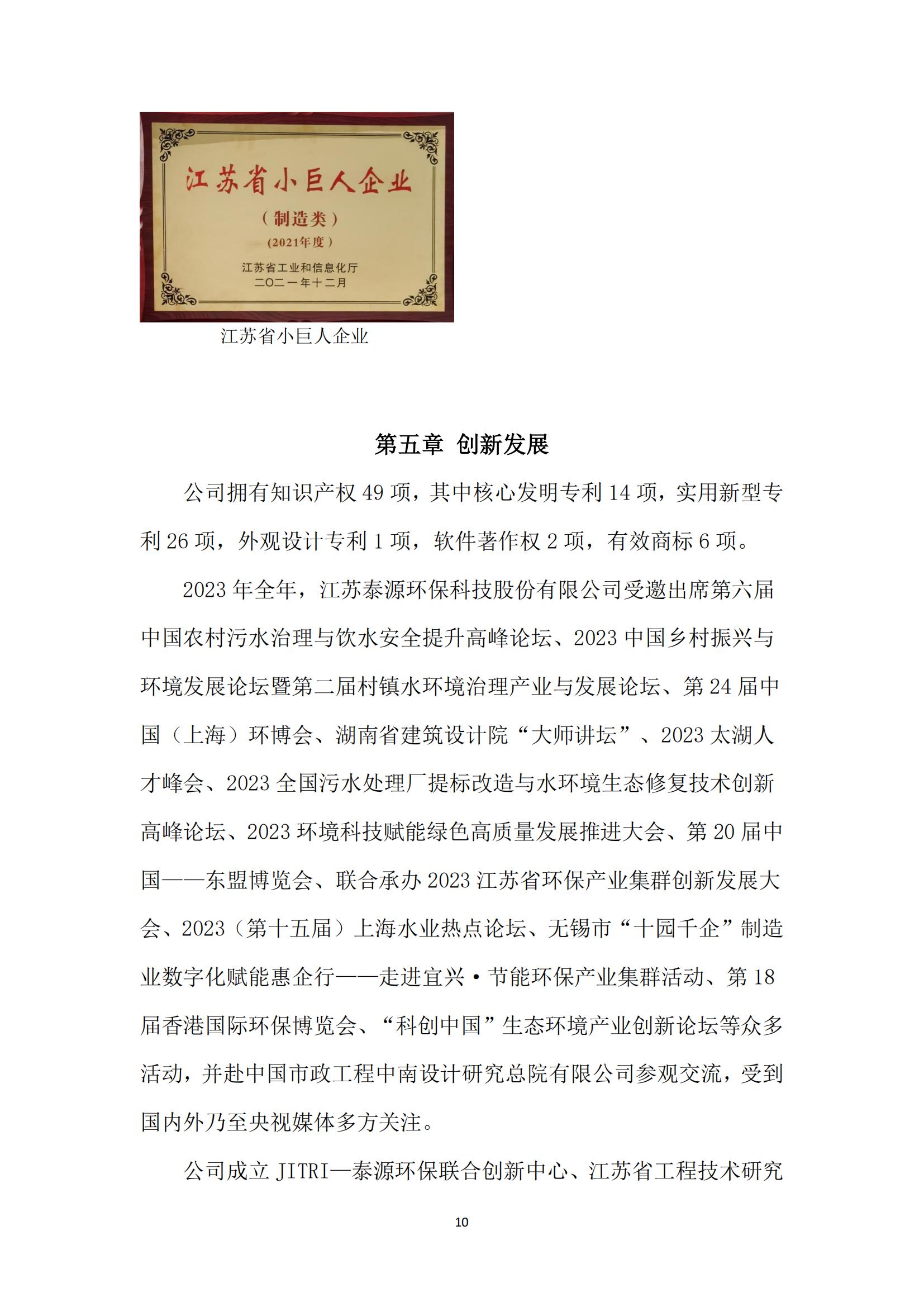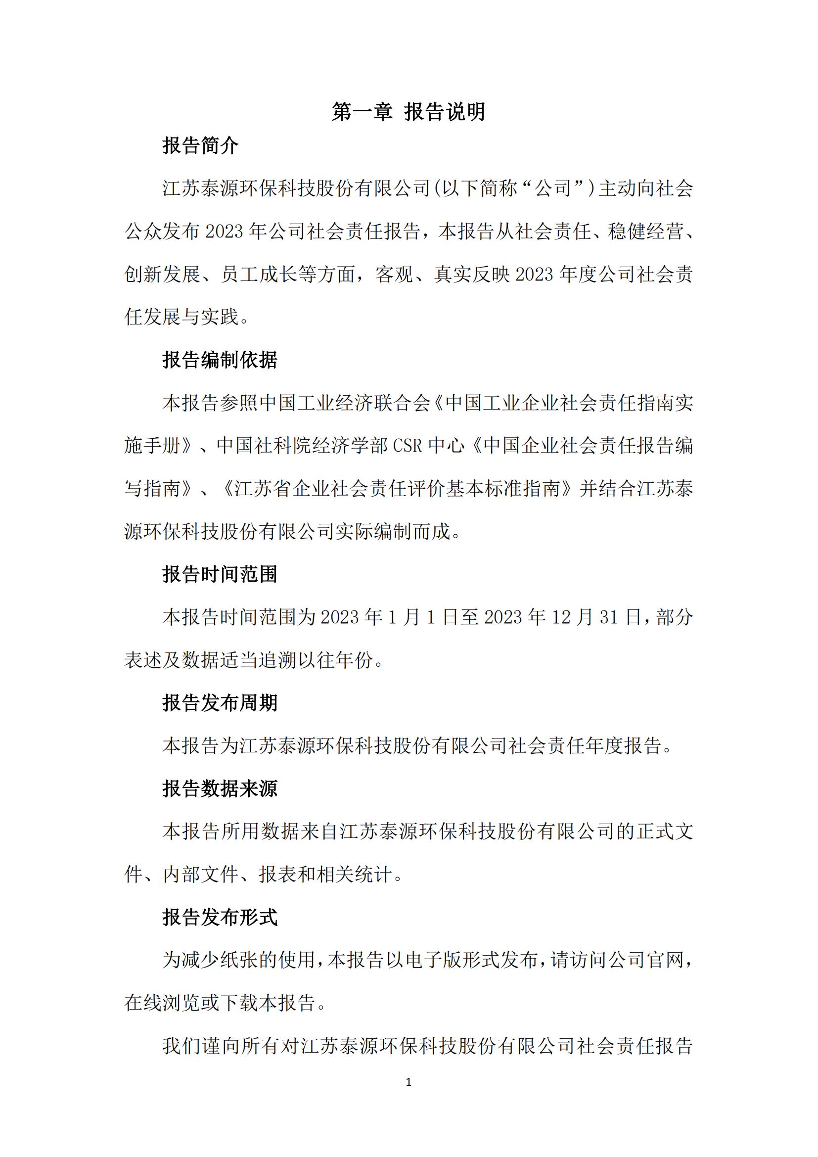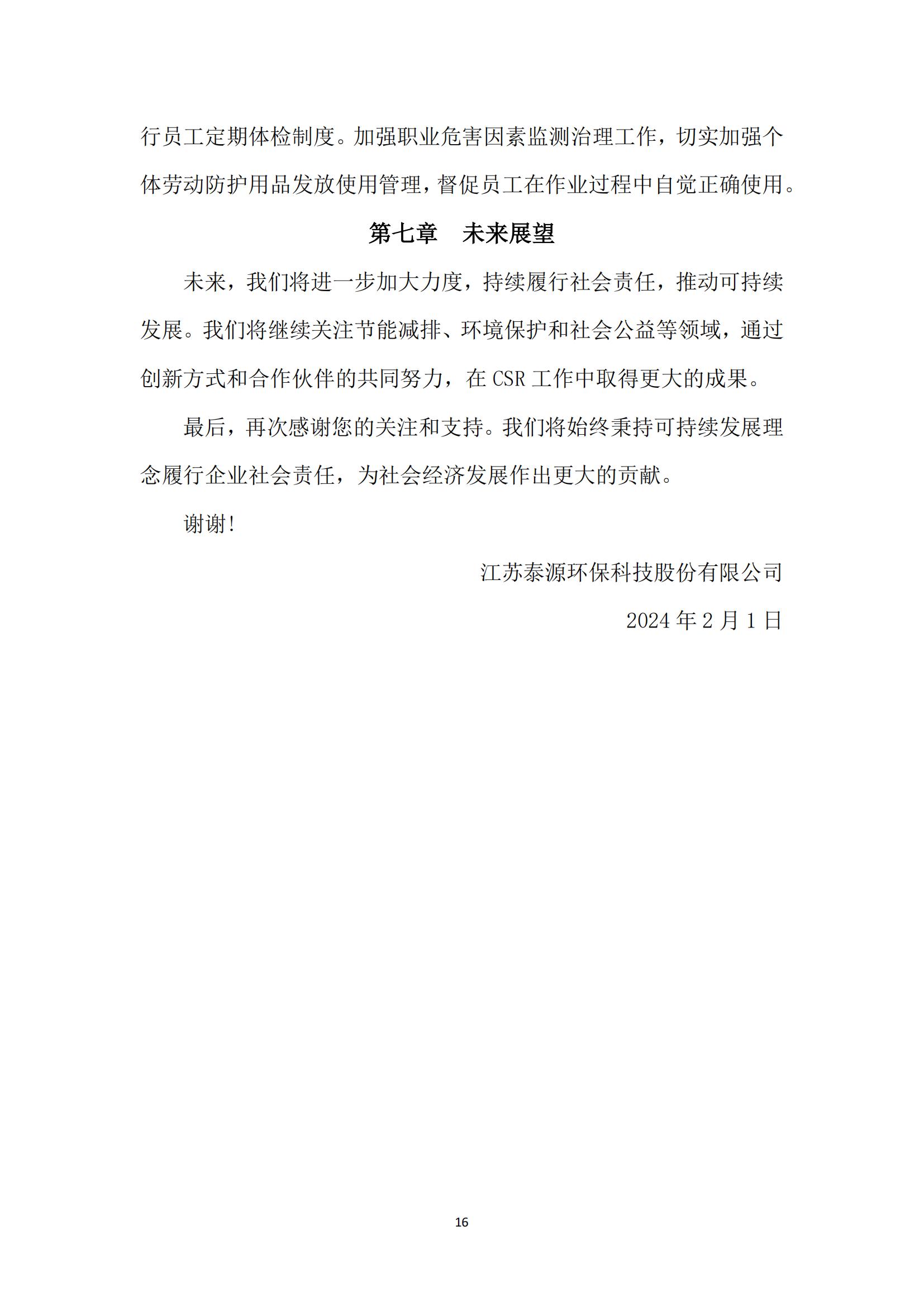 江苏泰源环保科技股份有限公司 2023年度社会责任报告