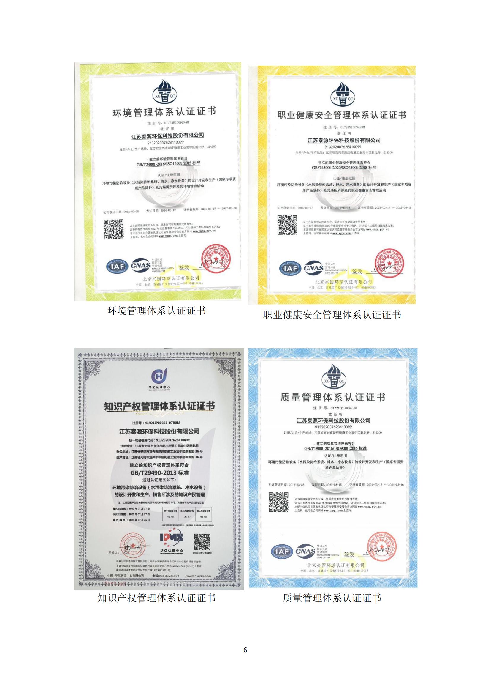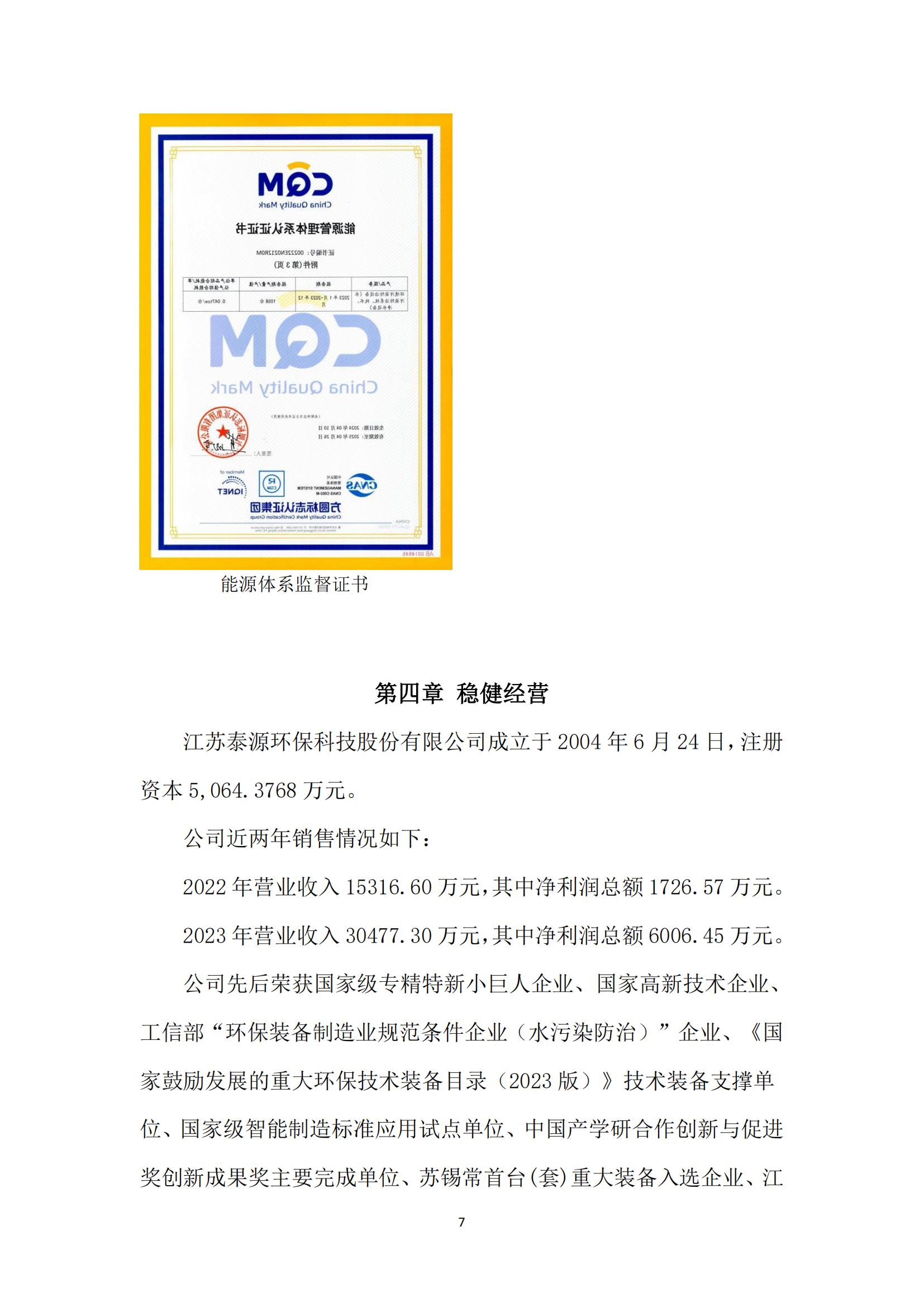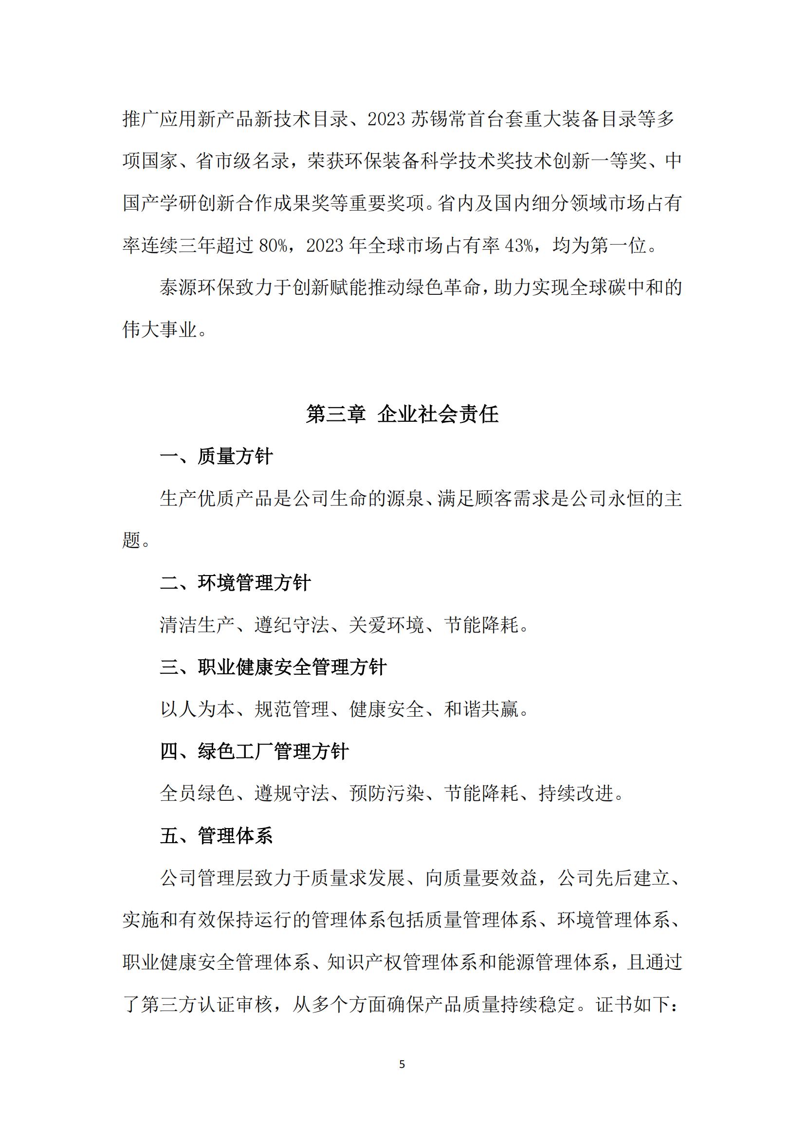 江苏泰源环保科技股份有限公司 2023年度社会责任报告
