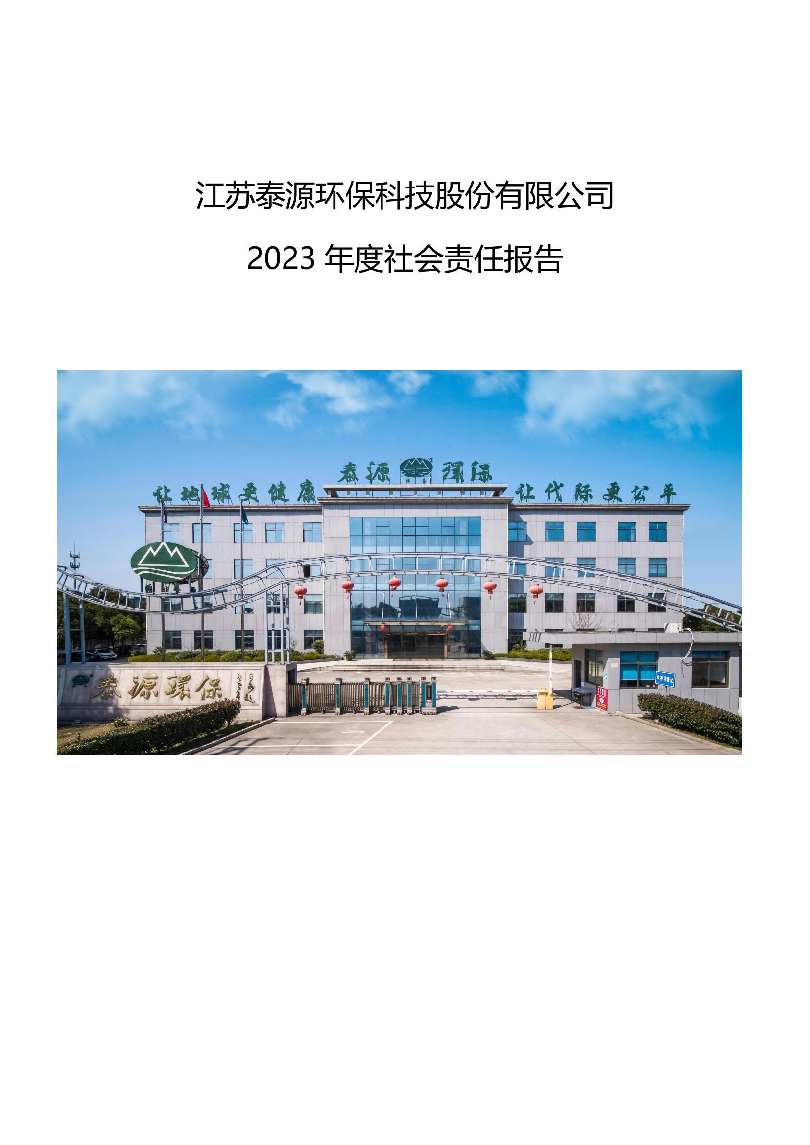 江苏泰源环保科技股份有限公司 2023年度社会责任报告