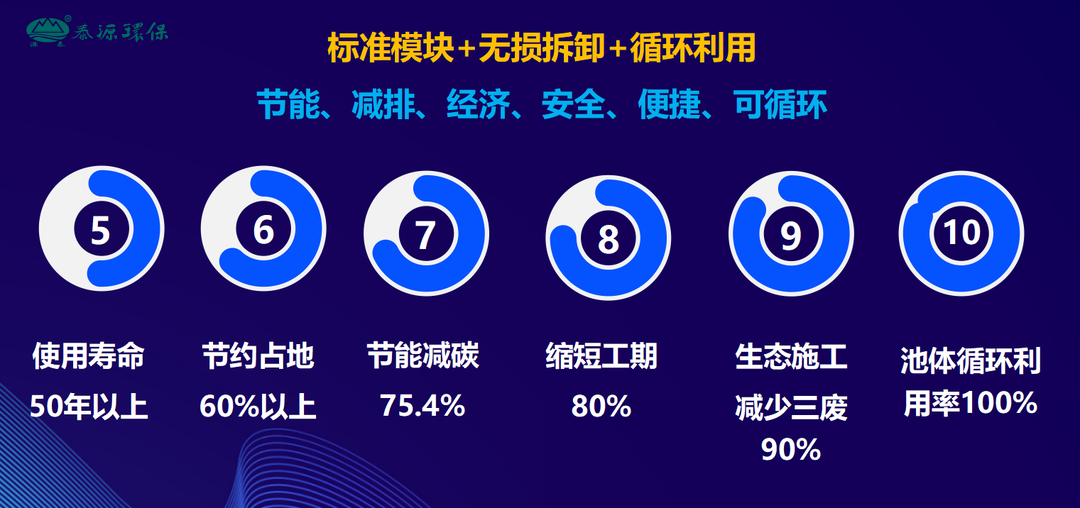 泰源环保开创的此项装配式技术的应用,实现了污水厂、水厂的低碳可循环使用,也能够适用于永久性项目的使用,促使我国水污染治理产业迈入绿色施工、循环利用的可持续发展新时代,助力“双碳”目标早日实现。